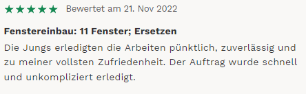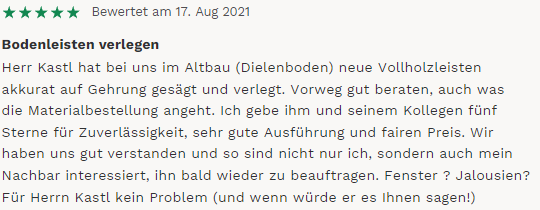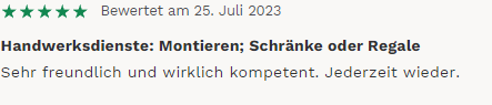 5 Sterne von G. aus Pfinztal (MyHammer)